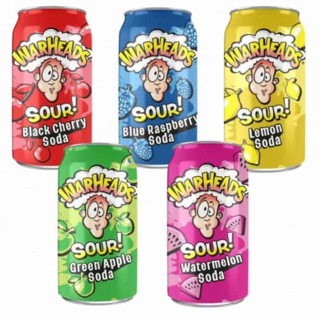Warheads Soda Extreme Sour Candy Soda Warheads Soda Extreme Sour Candy 5 Pack Variety Flavor Black Cherry Blue Raspberry