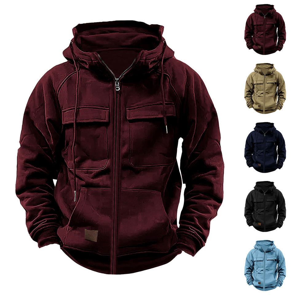Warm Hooded Tracksuits Zippered Pockets Casual Relaxed Fit Cotton Blend Solid Color Breathable Long Sleeve Men's Tracksuits