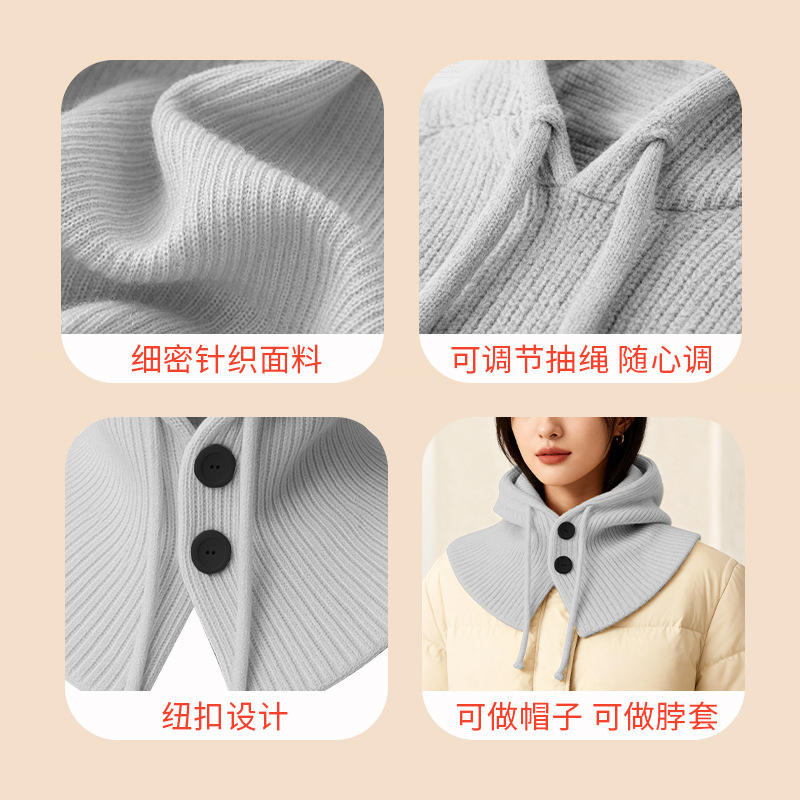 Warm Knitted Hooded Hat With Drawstring Women's Winter Windproof Neck Warmer Solid Color Acrylic Fiber Beanie For Cold Weather