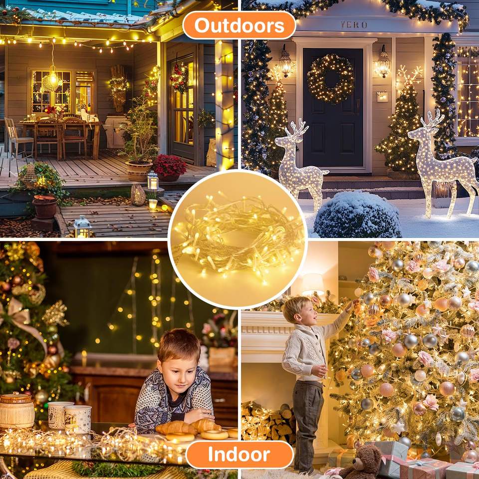 Guirlandes Lumineuses LED Blanc Chaud, Filaire à Brancher avec Câble Transparent, Scintillantes pour Décoration d'Arbre de Noël, Patio, Jardin, Mariage (Vente en Gros)