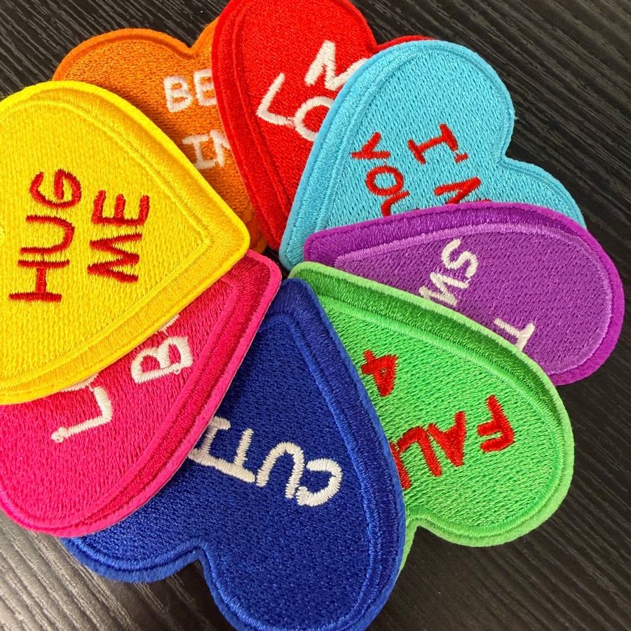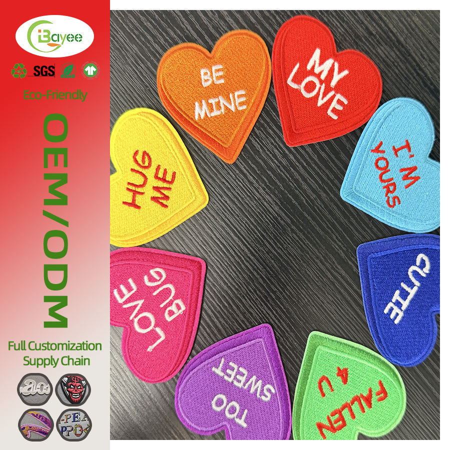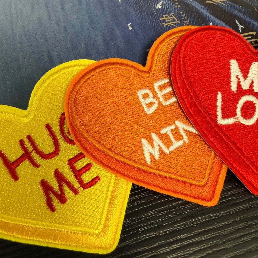 Patch brodé plat en forme de cœur, personnalisable, résistant au lavage et aux décolorations, disponible en plusieurs couleurs, pour jeans et chapeaux