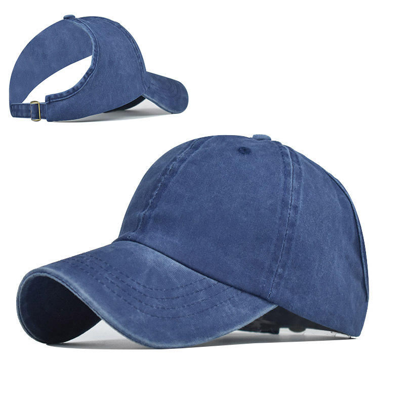 Pare-soleil lavable en denim queue de cheval bouffante Curl cheveux naturels queue de cheval dos nu casquette de baseball pour femmes