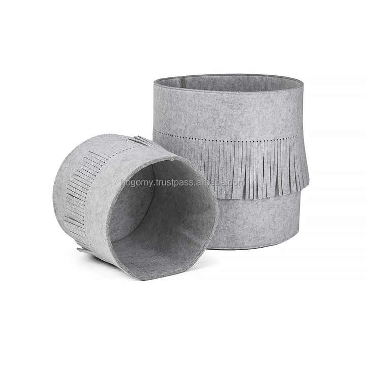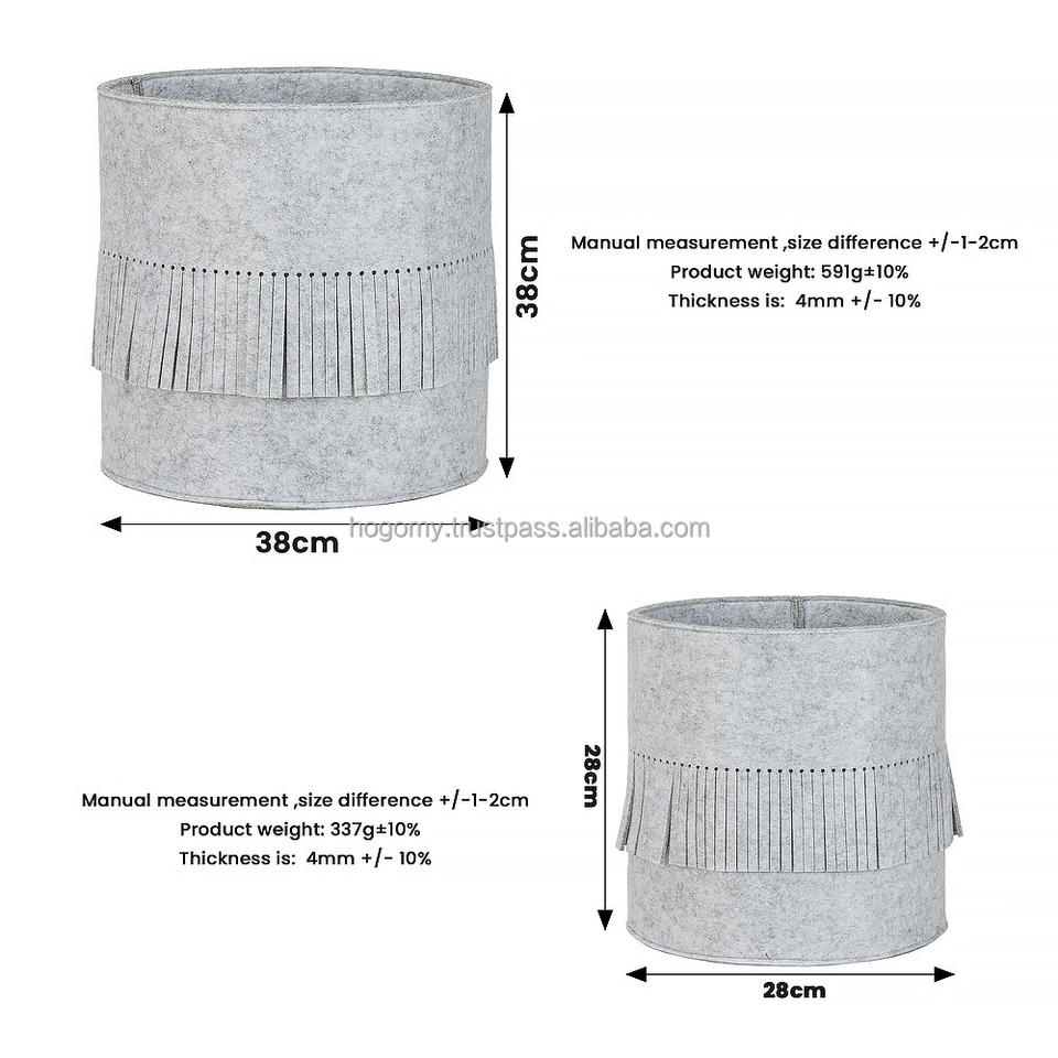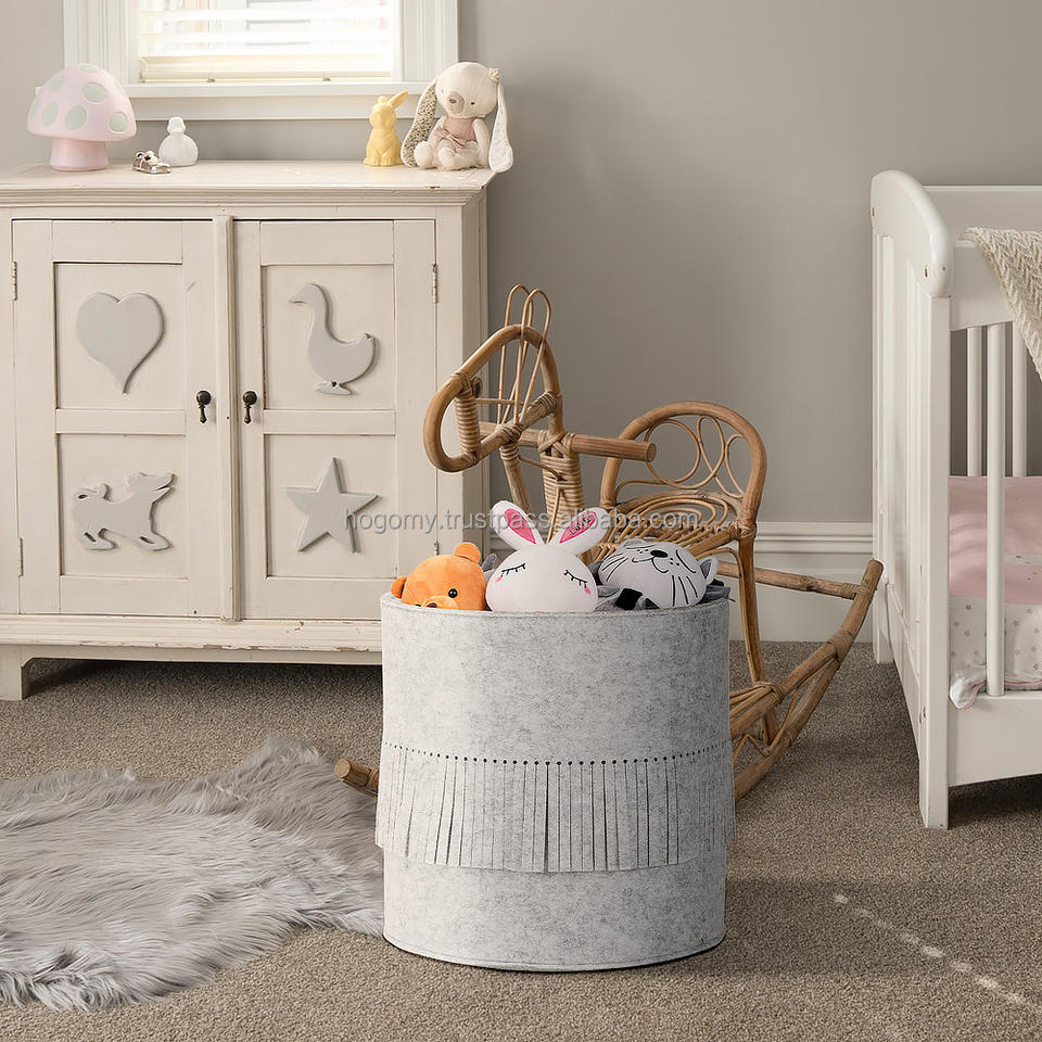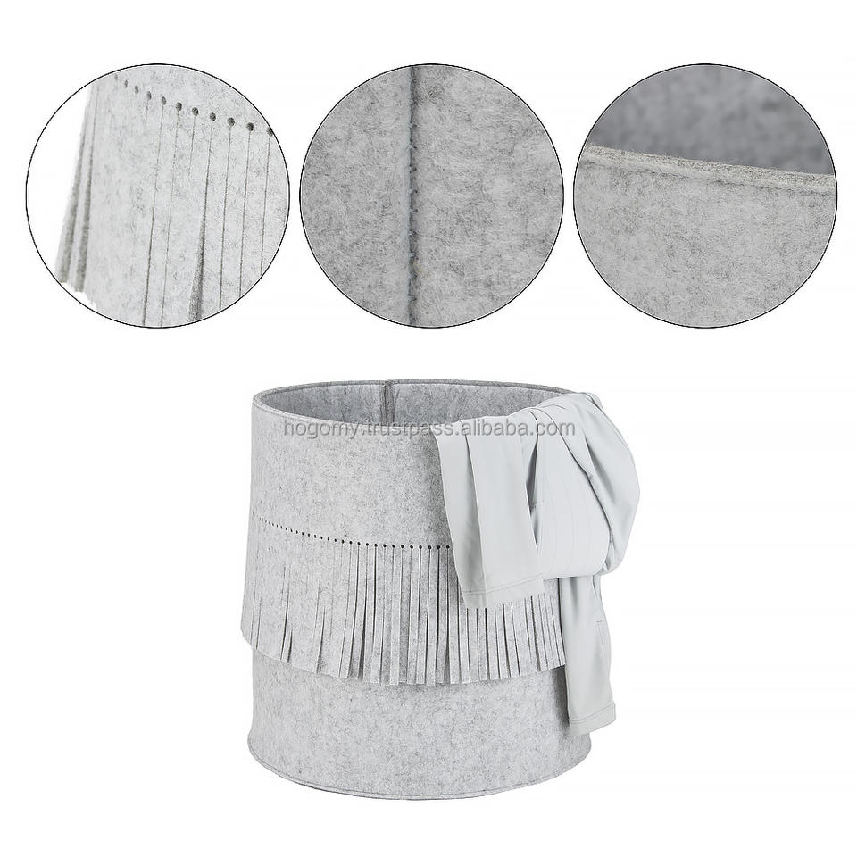 Panier à linge semi-circulaire en feutre nordique haut de gamme, lavable, écologique, avec pompon, pliable pour le rangement des vêtements et des jouets