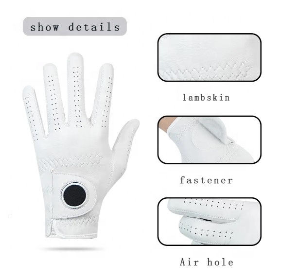 Gants de golf en cuir de mouton multicolores, lavables, doux et respirants pour hommes, logo personnalisé de haute qualité