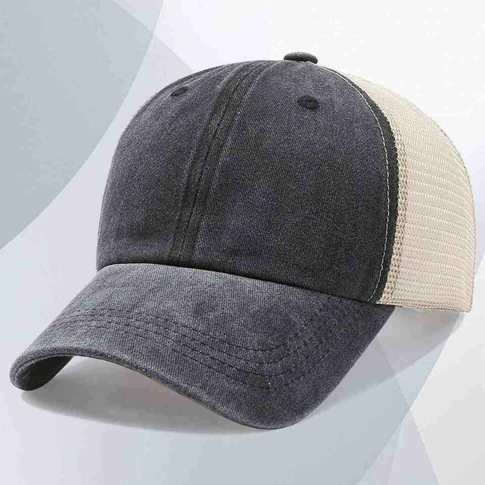 Casquette de baseball trucker vintage en coton lavé avec logo brodé, effet vieilli, visière souple, pour homme, vente en gros