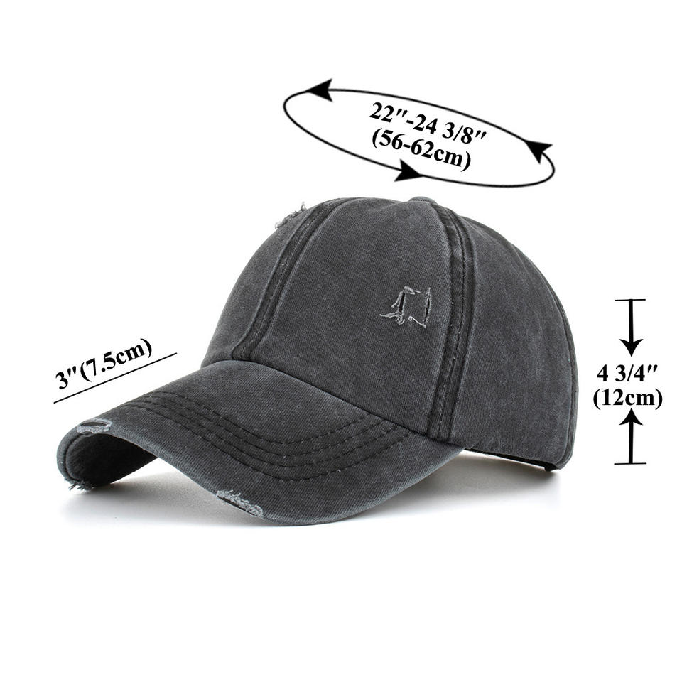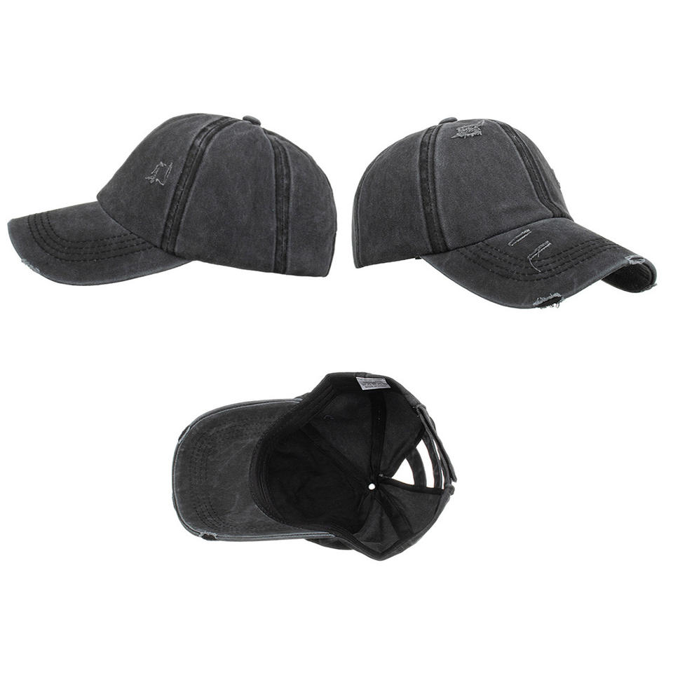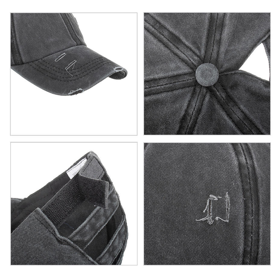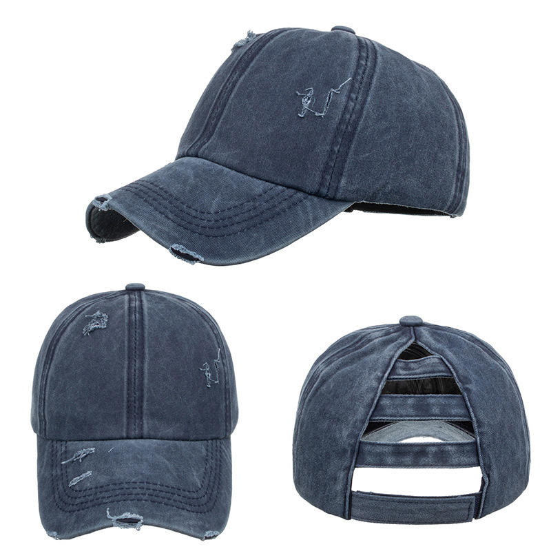 Washed Denim Distressed Mesh Baseball Cap Unisex Cotton Breathable Sunshade Solid Color Logo Adjustable Back Opening
