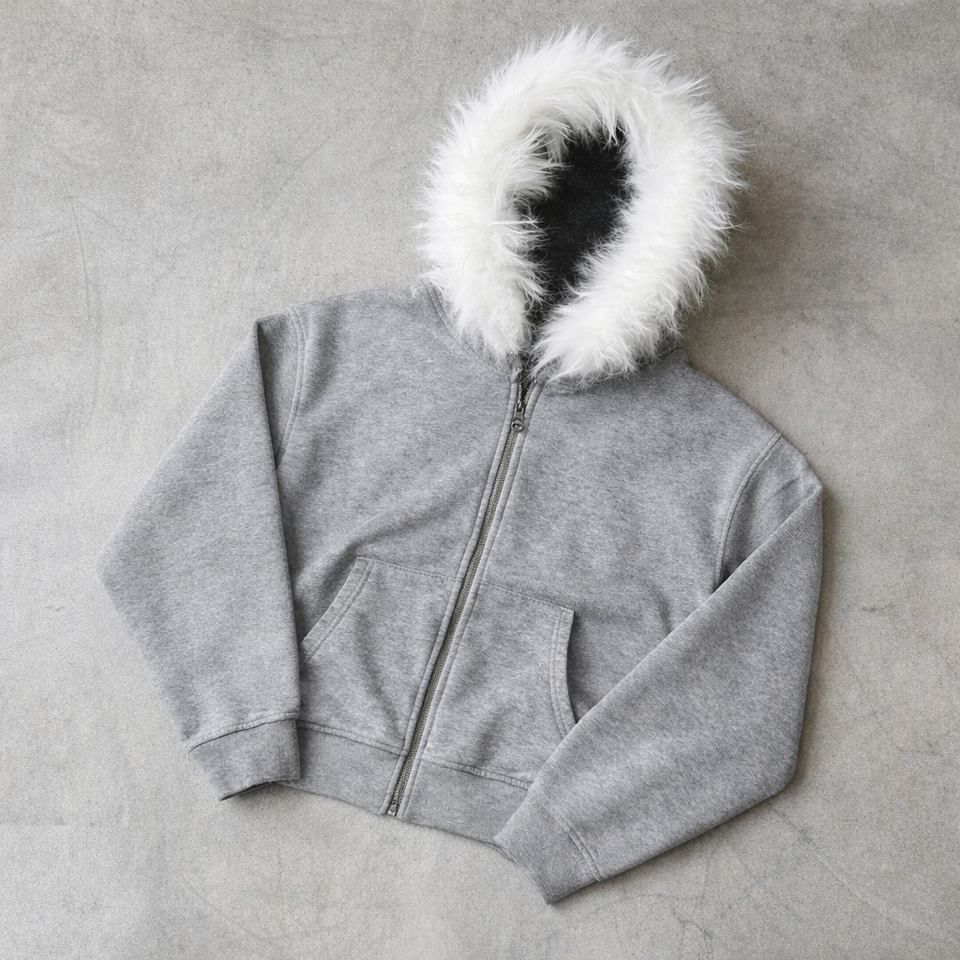 Sweat-shirt unisexe à capuche zippé, effet délavé, broderie, patchwork, color block, col en fourrure, War Horse