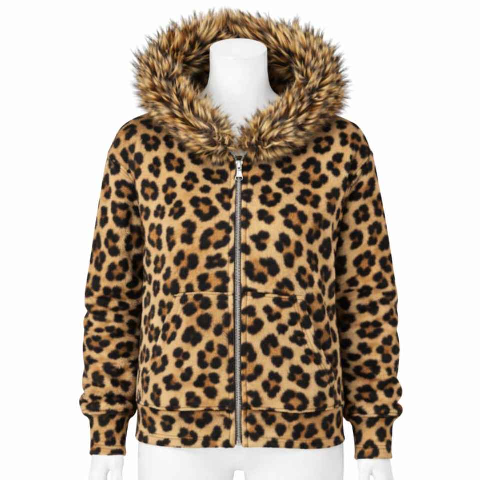 Sweat-shirt unisexe à capuche zippé, effet délavé, broderie, patchwork, color block, col en fourrure, War Horse