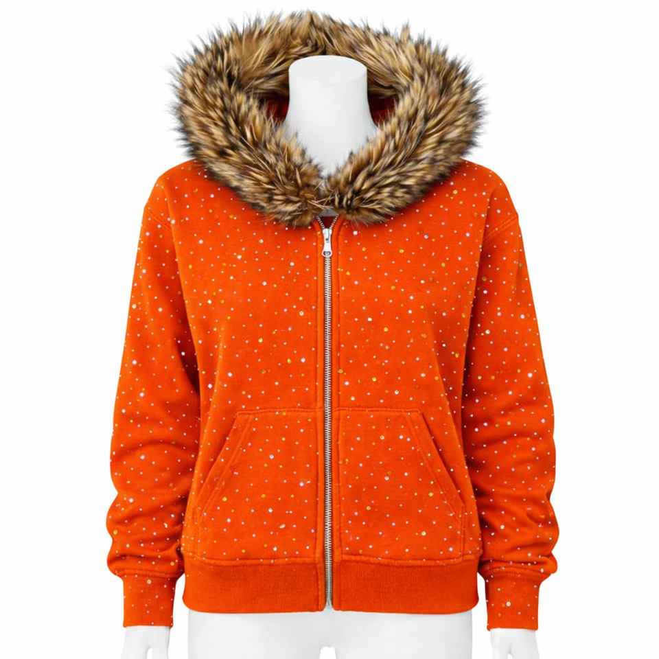 Sweat-shirt unisexe à capuche zippé, effet délavé, broderie, patchwork, color block, col en fourrure, War Horse