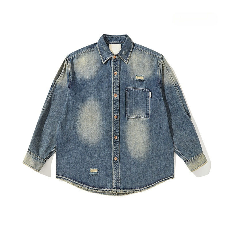 Nouvelle veste en jean épaisse pour homme CITY BOY, style rétro japonais délavé, avec trous, haute qualité, collection automne-hiver