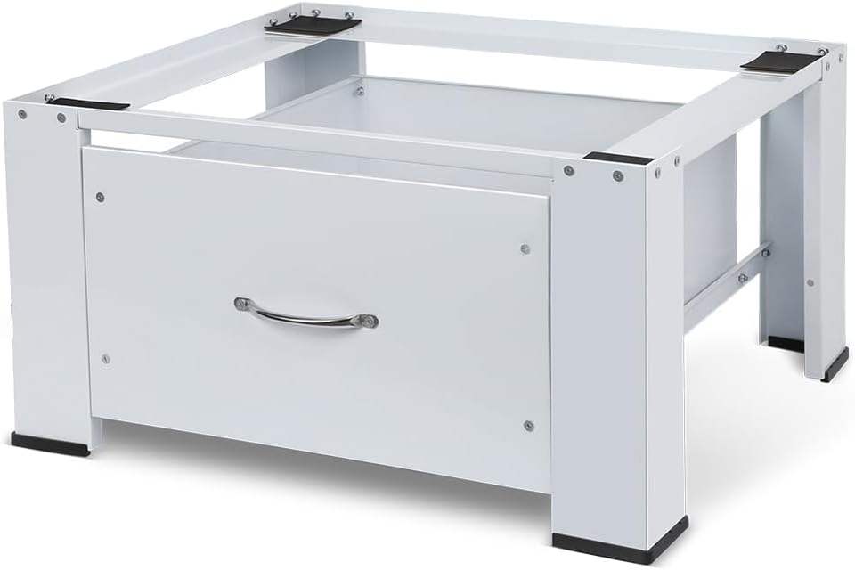 Base de machine à laver avec tiroir et entretoises latérales renforcées Rehausseur d'armoire en acier Emballage de vente par correspondance noir et blanc