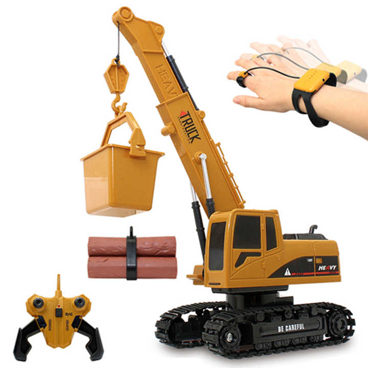 Camion grue radiocommandé RC avec détection de gravité, 2,4 GHz, en plastique, deux télécommandes, construction mécanique à levage, jouets