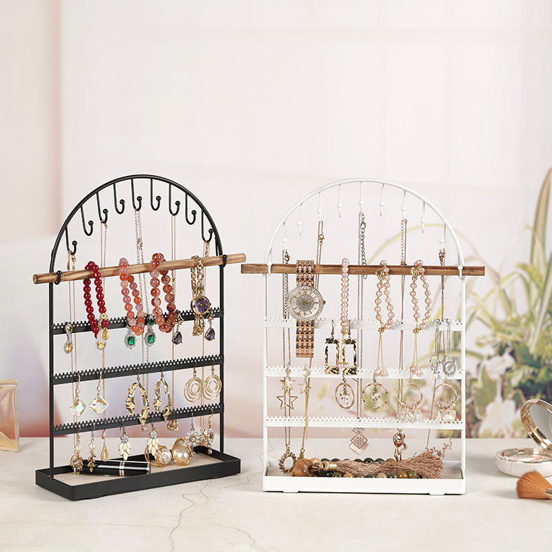 Tige de montre avec bracelet Présentoir à bijoux multicouche avec collier Crochet Boucles d'oreilles Porte-clou Anneau Plateau