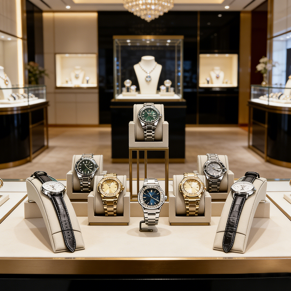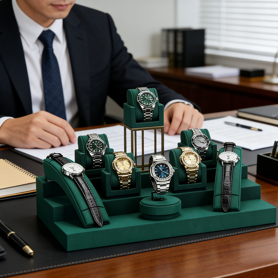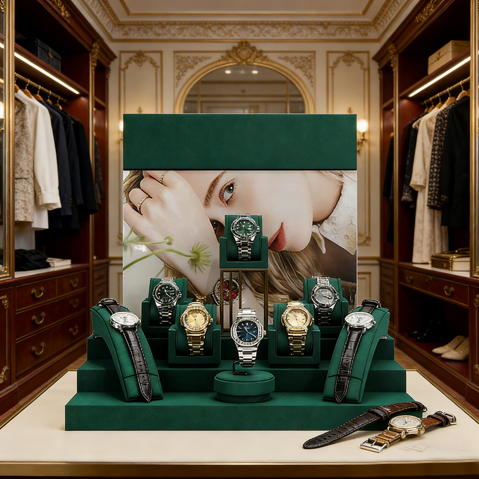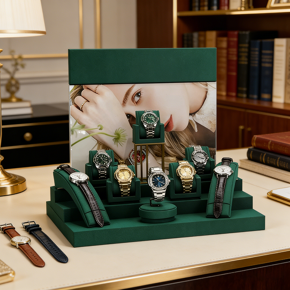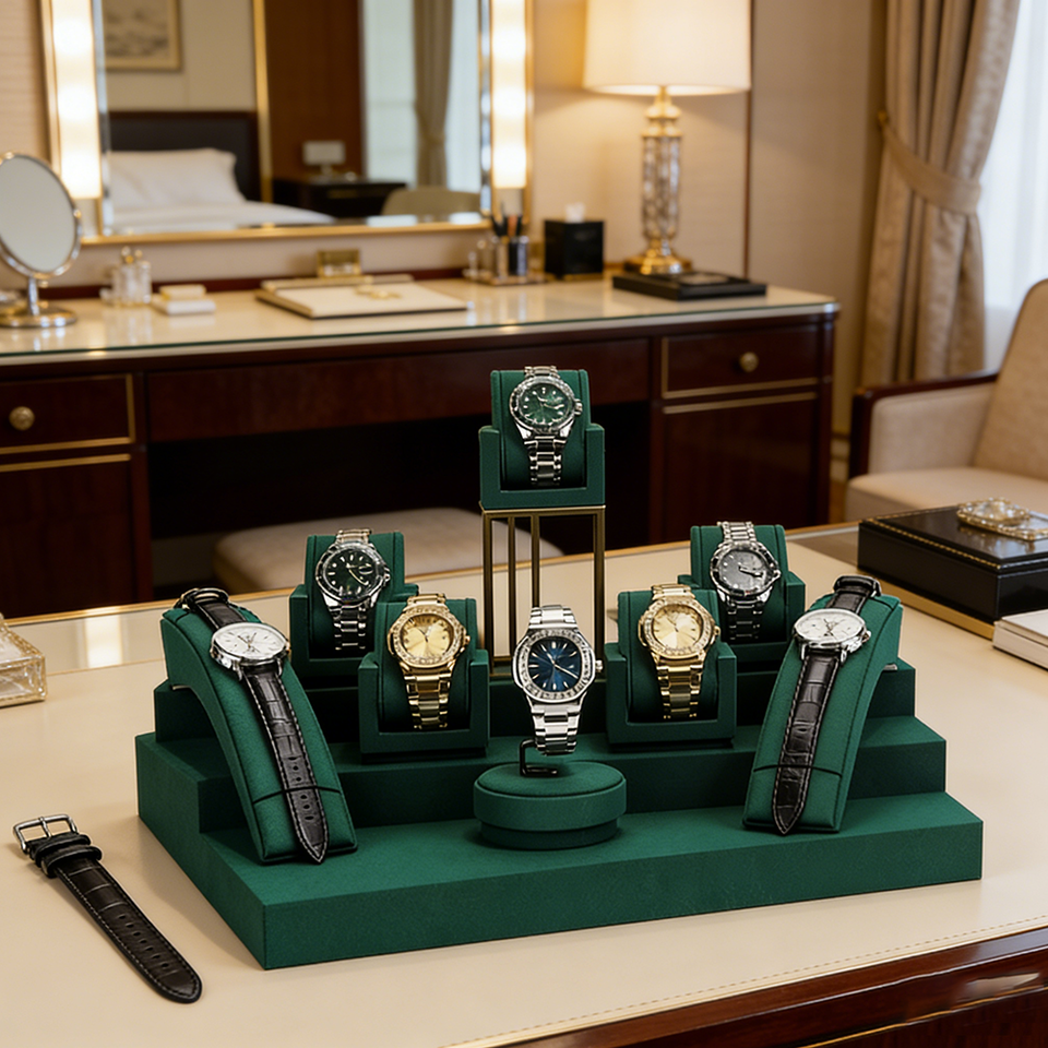 Présentoir de montres en microfibre pour bijouterie et magasin de détail