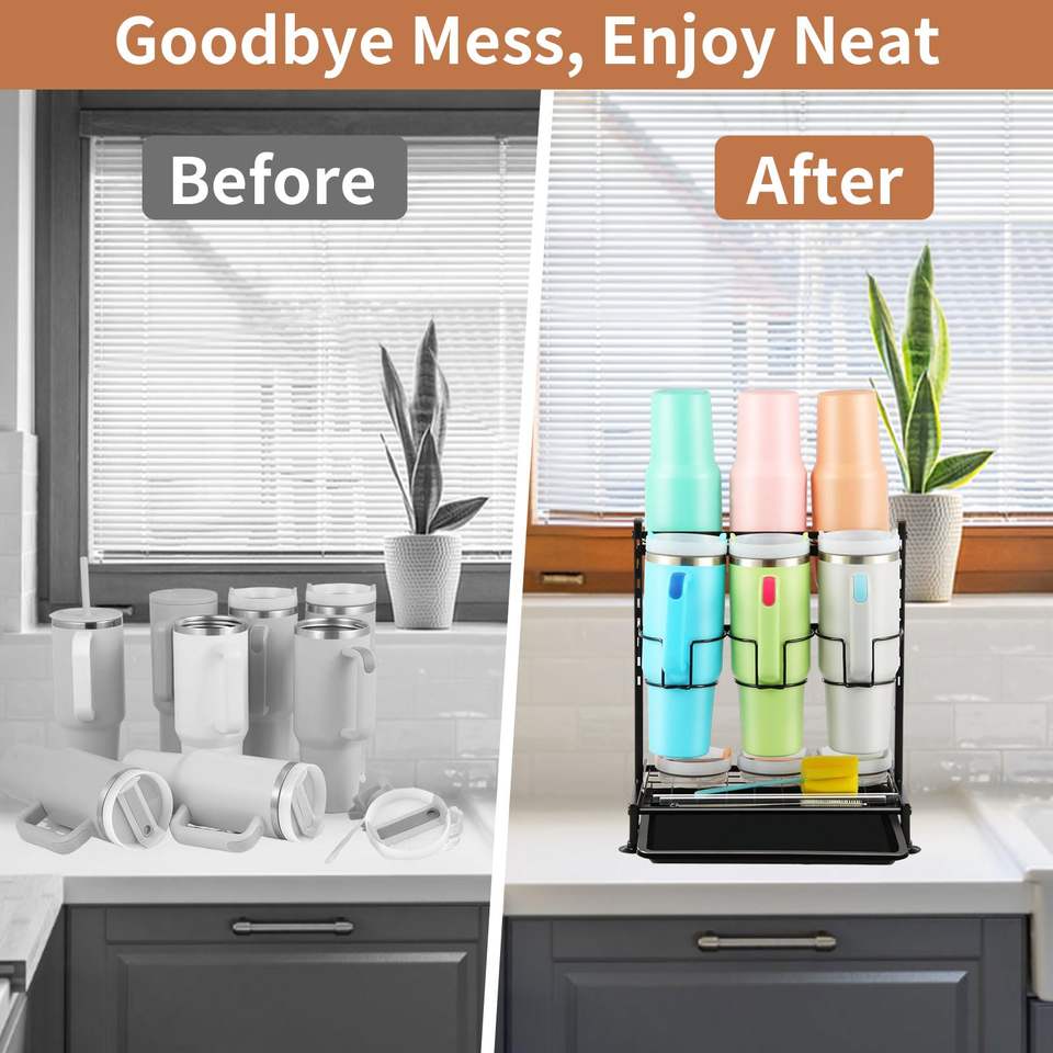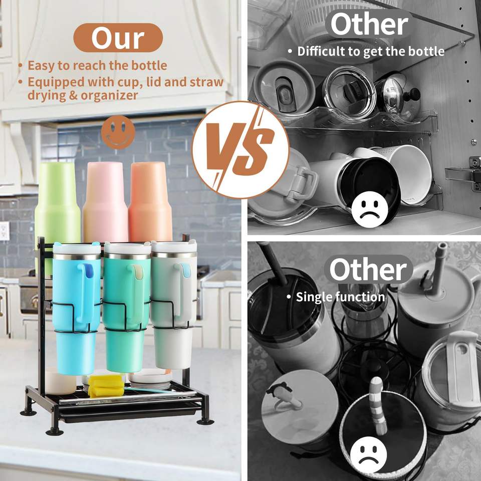 Organisateur de bouteille d'eau compatible avec le gobelet Stanley 40oz avec poignée Organisateur de gobelets réglable Rangement avec étendoir