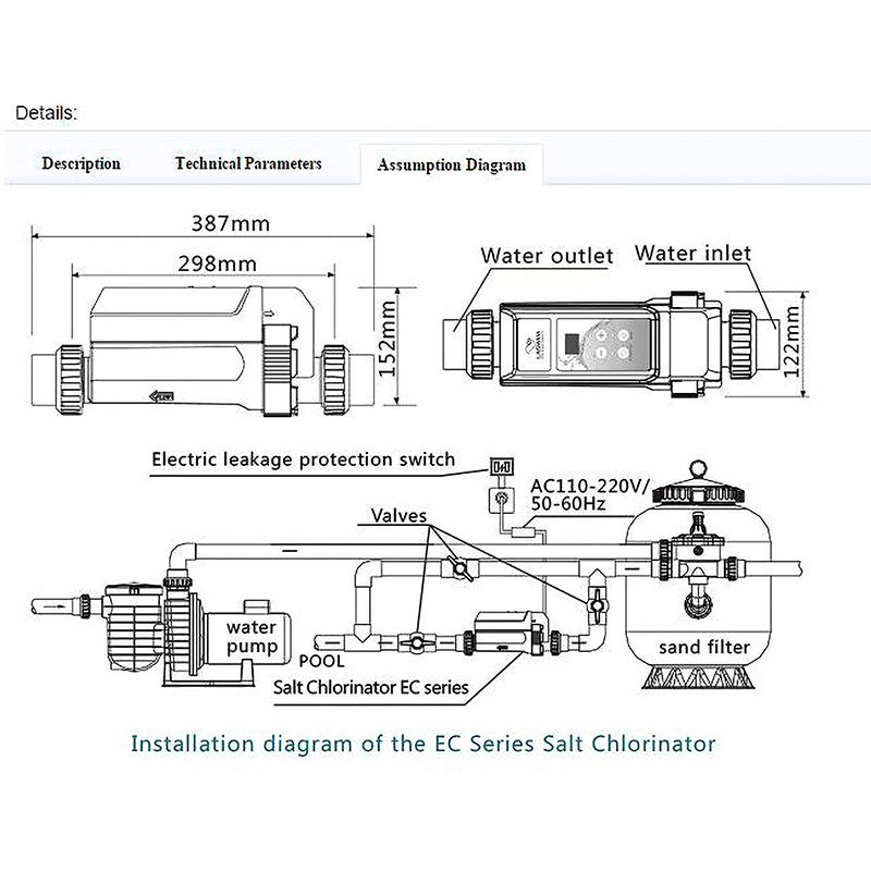 Contrôleur de chlore d'eau Piscine Spa Chlorinateur Générateur de chlore Cellule Électrolyse de l'eau salée