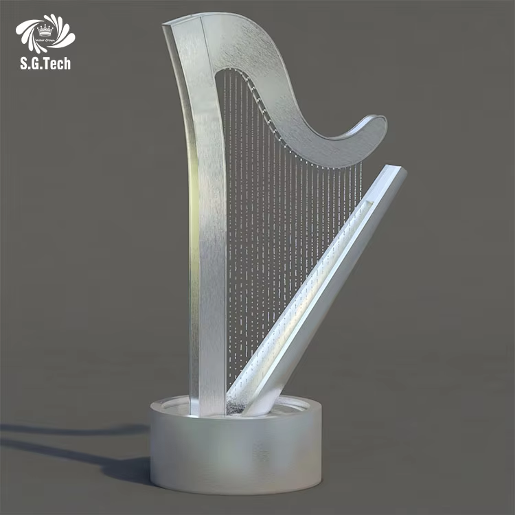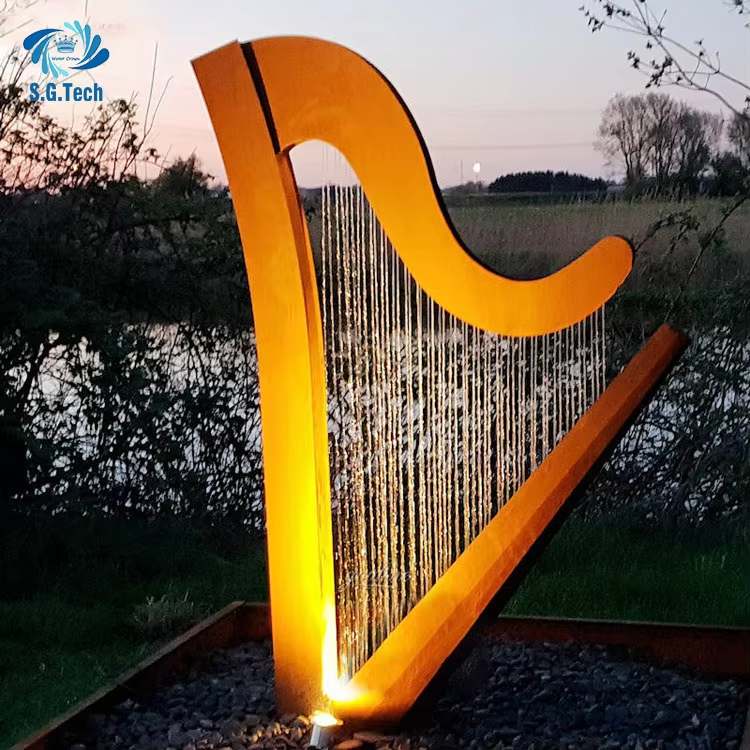 Rideau d'eau harpe en acier inoxydable à grande échelle personnalisé Couronne d'eau Système de contrôle informatique fabriqué avec précision Jardin en pierre