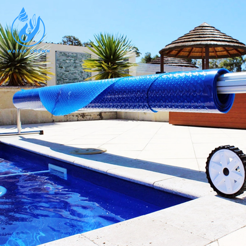 Bâche isolante en PVC pour piscine familiale Water Crown, durable, personnalisable, fond à bulles carré, installation facile, bleue