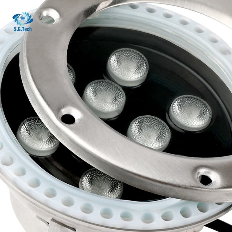 Projecteurs LED étanches Water Crown 18W/24W à changement de couleur pour fontaines, bassins et piscines, en acier inoxydable