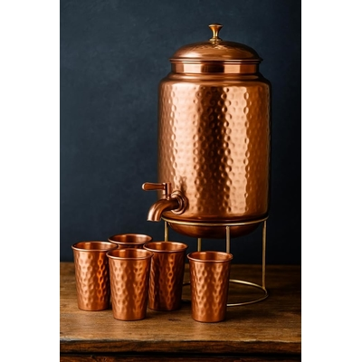 Pot à eau avec robinet et couvercle, carafe de stockage traditionnelle faite à la main pour la boisson ayurvédique, pour la maison, la cuisine et le bureau