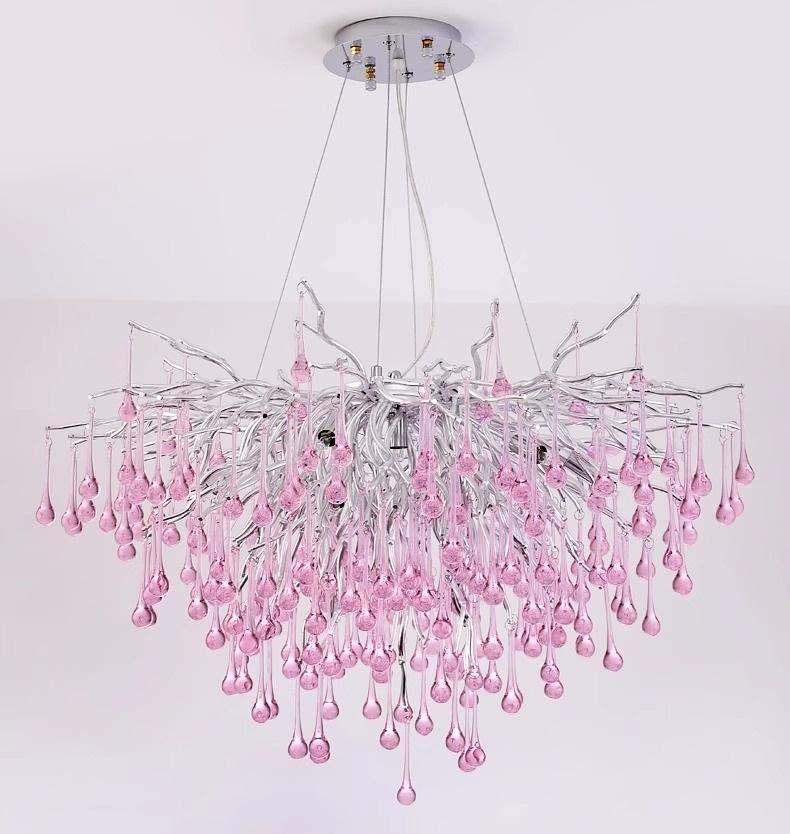 Nom du produit:Lustre Plafonnier en Verre Rose Goutte d'Eau