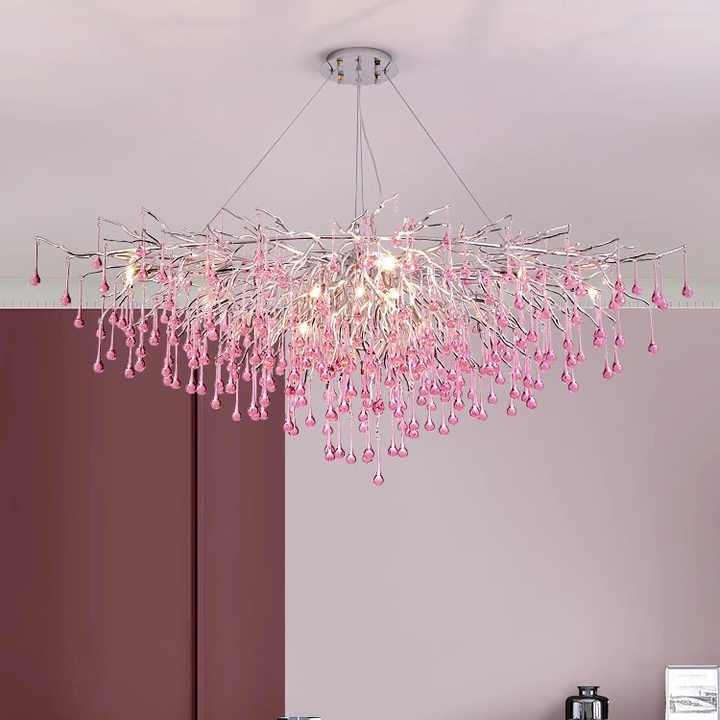 Lustre en cristal moderne en forme de goutte d'eau rose pour plafond, chambre à coucher, restaurant, hôtel de luxe, décoration de hall