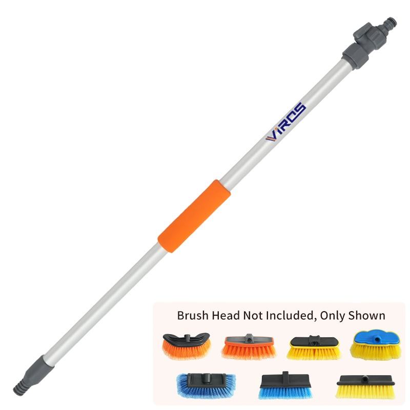 Tige télescopique alimentée en eau avec interface à filetage américain et brosses remplaçables pour le nettoyage des camions
