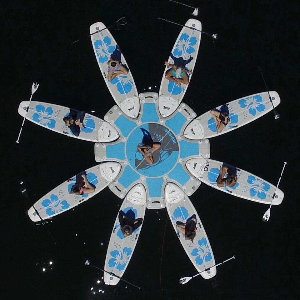 Plateforme flottante ronde pour le surf, planche à pagaie gonflable, plateforme de yoga sur l'eau