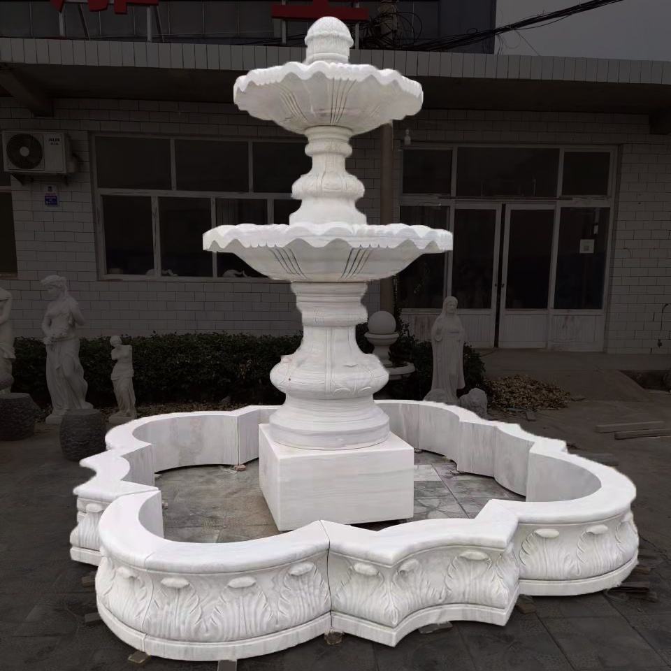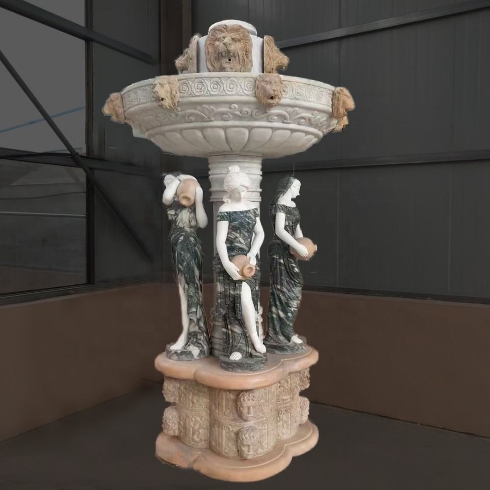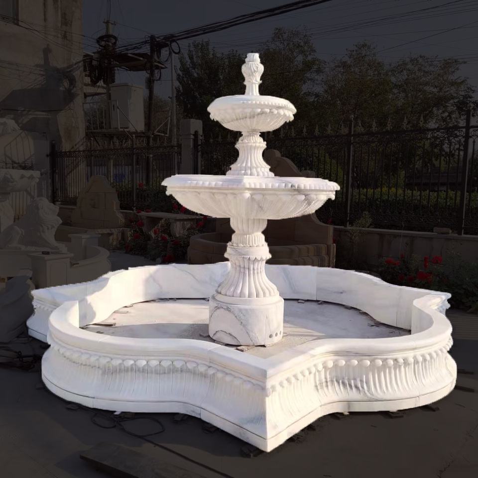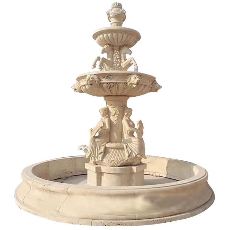 Fontaine d'eau en pierre, style Renaissance, fontaine à trois niveaux, ornements d'art, sculpture