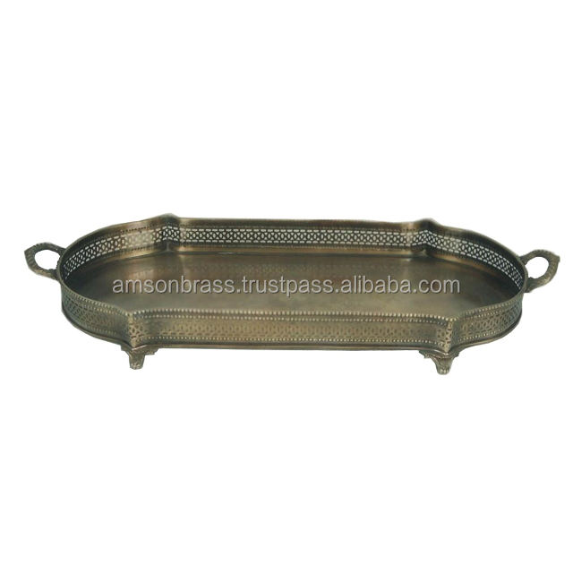 Plateau de service en laiton pour verres à eau, finitions antiques, plateau de service pour la table à manger, nourriture et boissons, artisanat