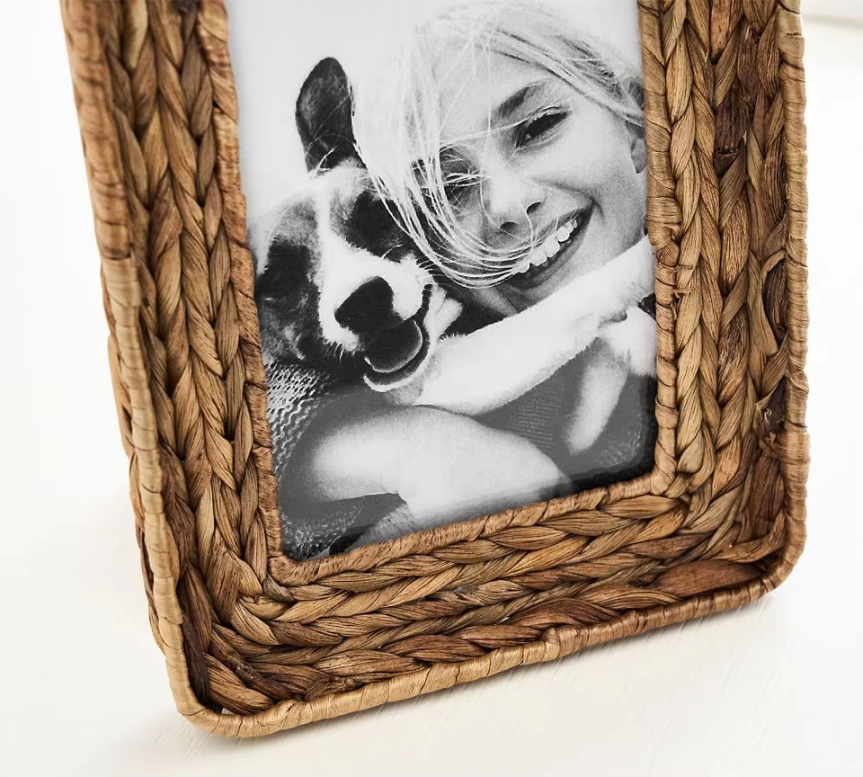 Cadre photo rectangulaire fait main en jacinthe d'eau