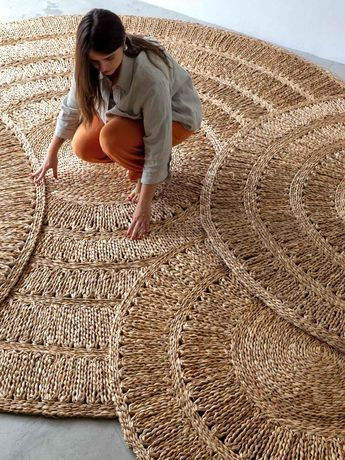 Tapis en jacinthe d'eau fait main, style bohème, extra épais, écologique, antidérapant, décoration pour la maison et le bureau