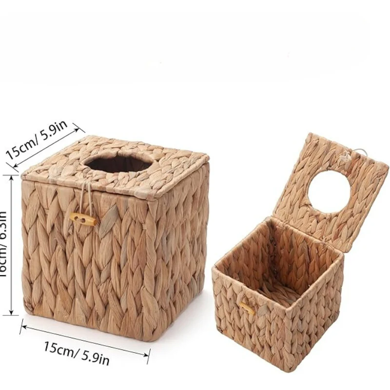 Nom:Boîte à mouchoirs en jacinthe d'eau avec couvercle. Dimensions : L15 x H15,5 cm.