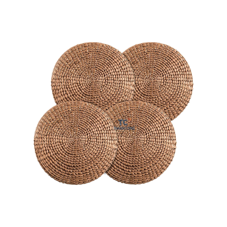 Water Hyacinth Woven Placemat for Dining Set of 6 Rustic Round Kitchen Placemats with Decorative Round Holder Table Mat