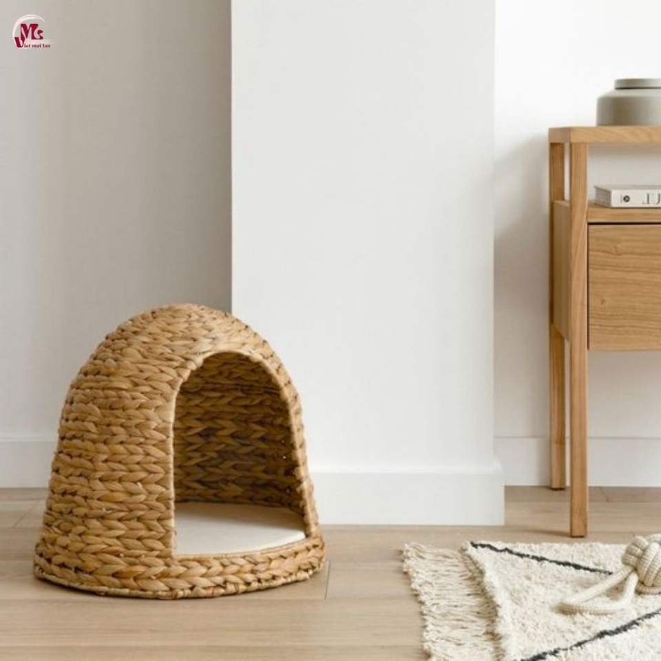 Water Hyacinth House for Cat and Small Dog with Cushion Natural and Handwoven Strong Durable and Decorative for Wholesale