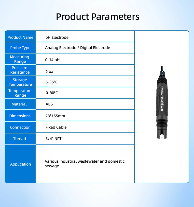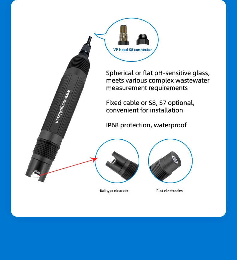 Capteur de pH numérique étanche / Électrode de pH / Sonde de pH RS485 Haute stabilité Conception durable Protection IP68 Précision 0,5%FS