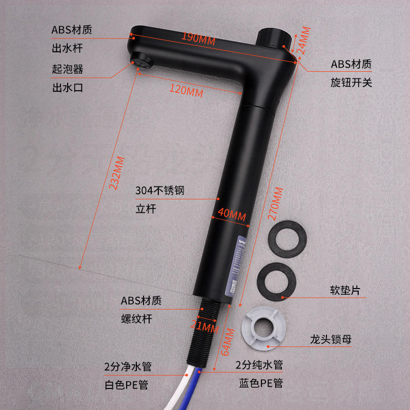 Robinet de cuisine purificateur d'eau en acier inoxydable 304, monocommande, à poser, anti-éclaboussures, avec sortie d'eau pure