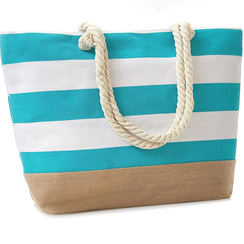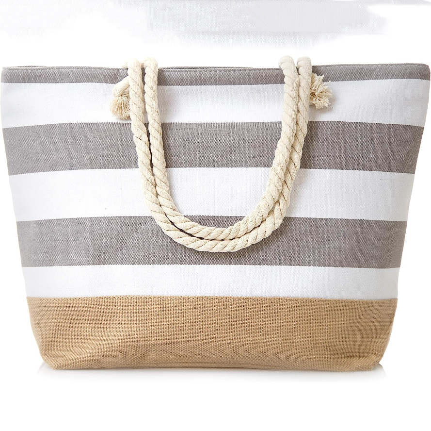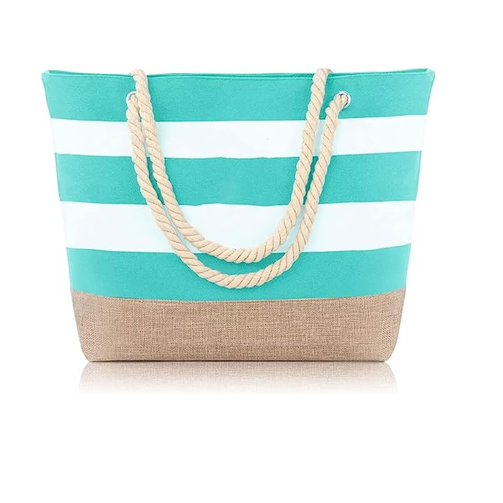 Sac fourre-tout isotherme en toile imperméable avec bandoulière et fermeture éclair, sac de plage isotherme avec motif lettres