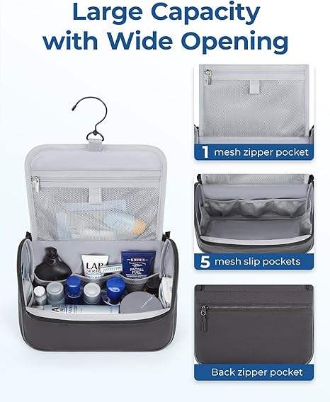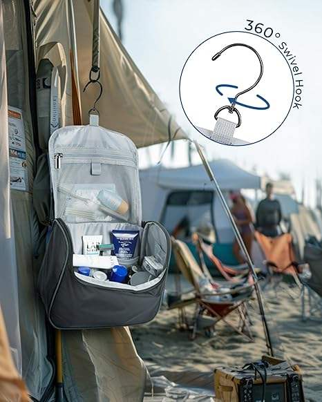 Sac de toilette suspendu en polyester résistant à l'eau avec logo personnalisé et rotation à 360° ° Crochet pivotant pour hôtel/gym/camping, vente en gros disponible