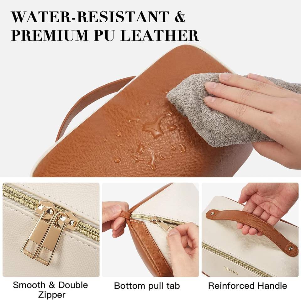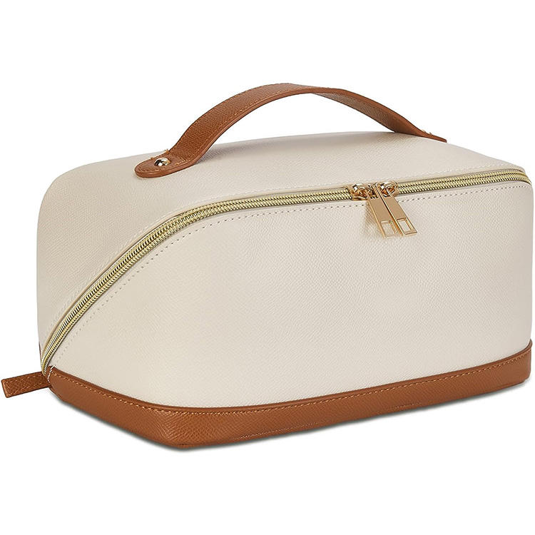 Sac de voyage vintage résistant à l'eau avec fermeture éclair, en cuir PU portable, grande capacité, organiseur de maquillage pour femmes