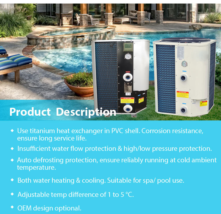 Pompe à chaleur à source d'eau, chauffe-piscine/spa à inverter, 13,5 kW, électrique, utilisation extérieure