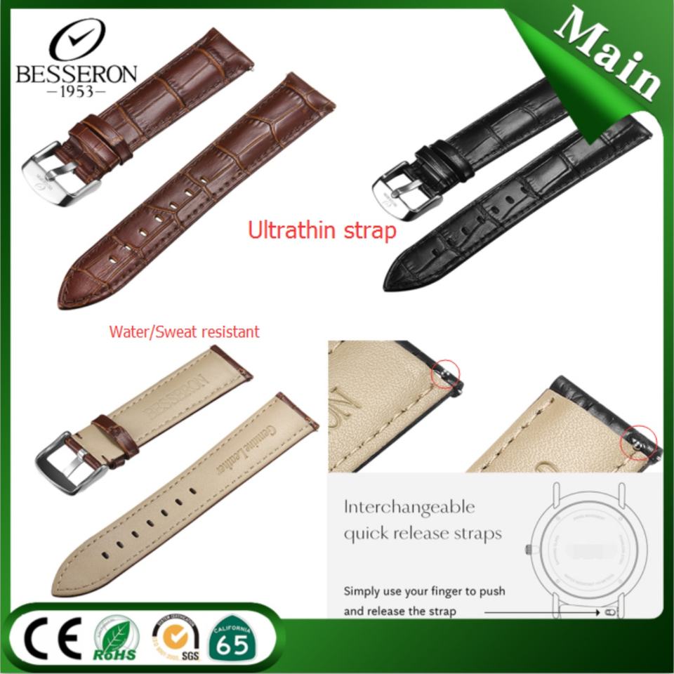 Bracelets de montre fins en cuir véritable, résistants à l'eau et à la transpiration, interchangeables, à libération rapide