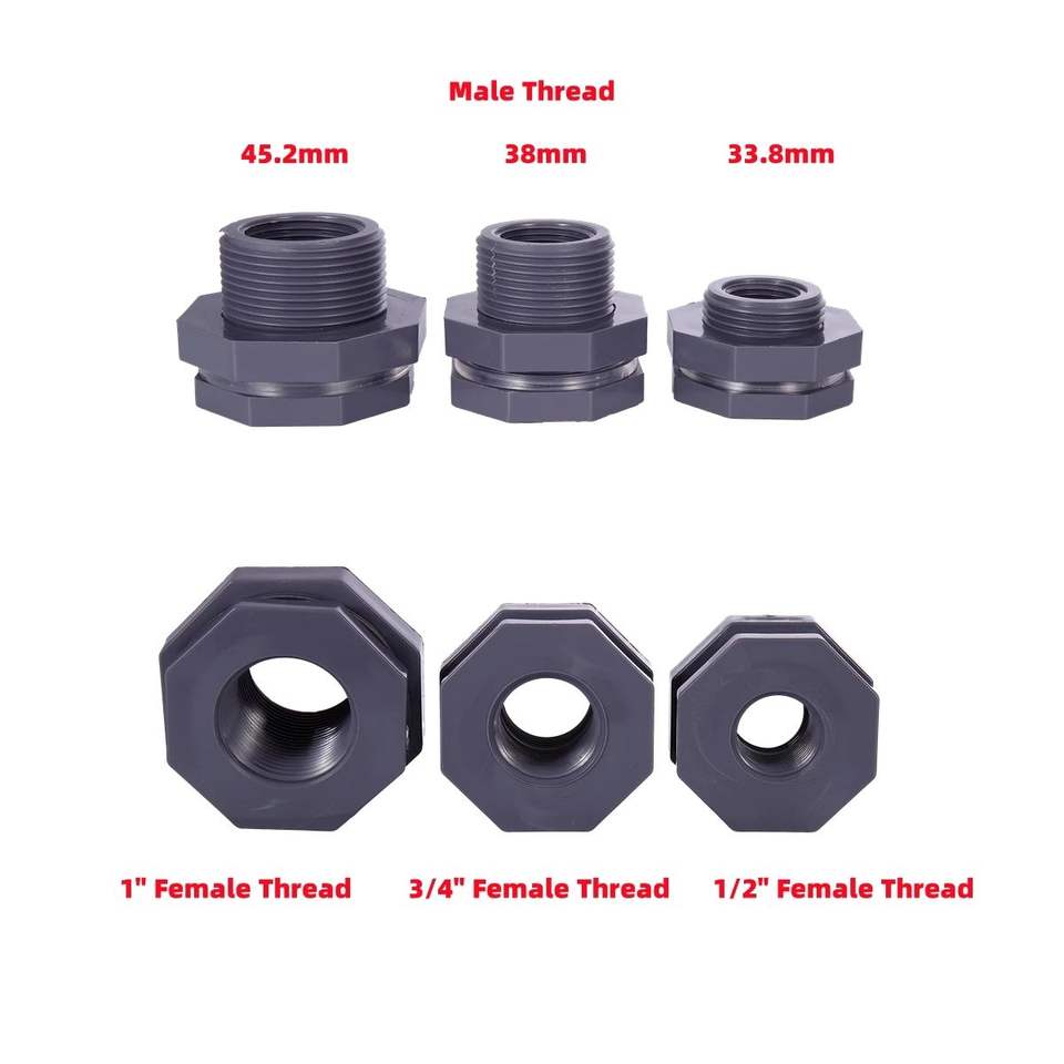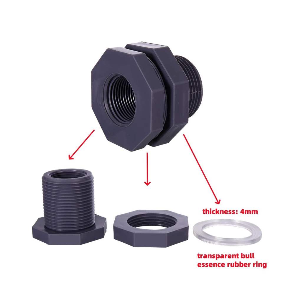 Water Tank PVC Connector with Rubber Seal Female Thread Water Barrel Joint Aquarium Pond Adapter