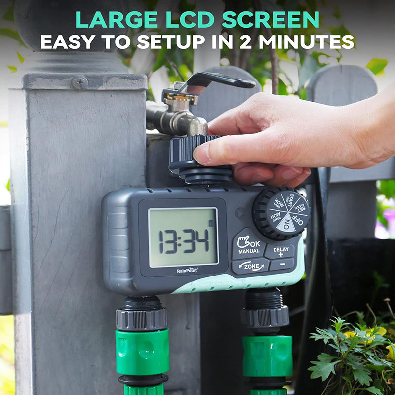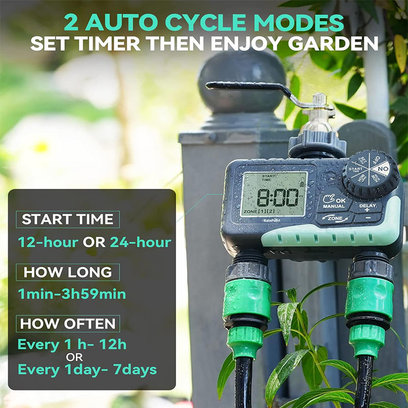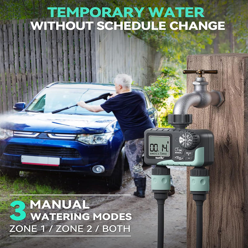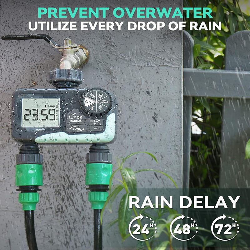 Minuterie d'eau pour tuyau d'arrosage Minuterie d'arrosage 2 zones avec retard de pluie Système de contrôleur d'irrigation automatique d'arrosage manuel