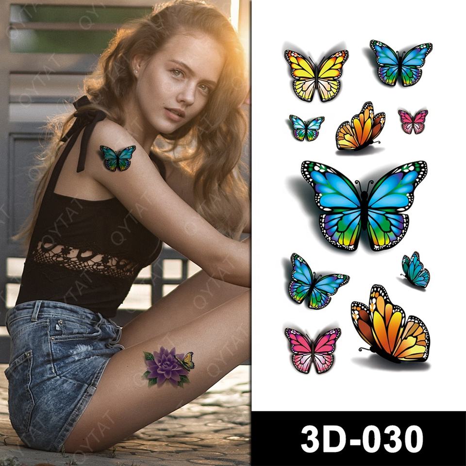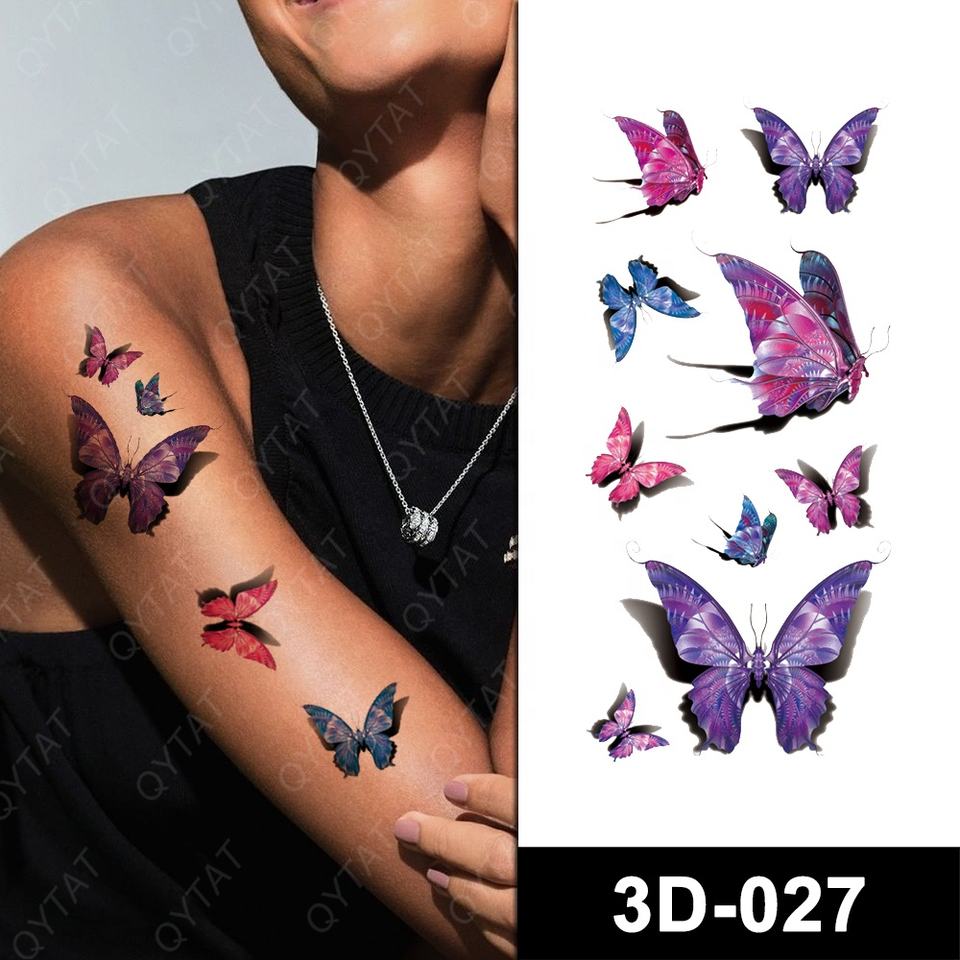 Autocollant de tatouage temporaire 3D pour femme, motif floral et papillon, pour transfert d'eau, sûr pour la peau, pour le corps, les bras, les jambes et les chevilles