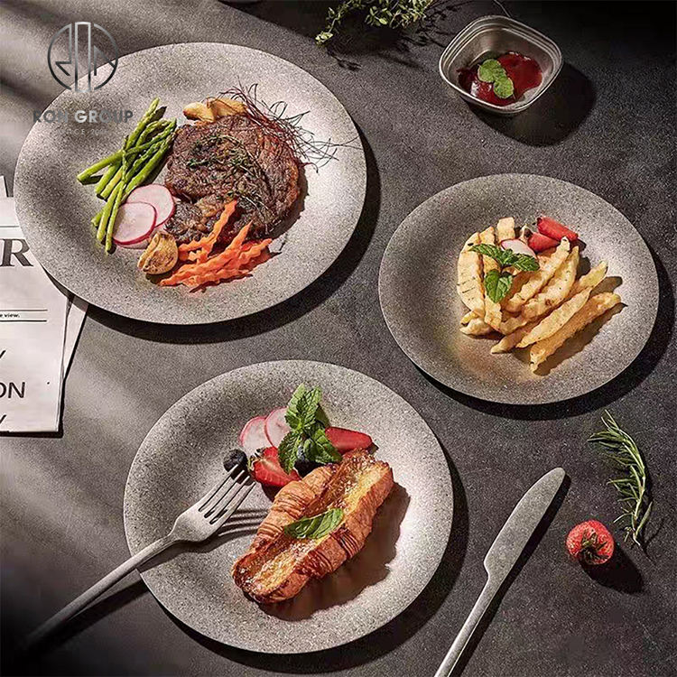 Assiettes en acier inoxydable à motif vague d'eau, vaisselle élégante pour restaurant, service de restauration et de traiteur