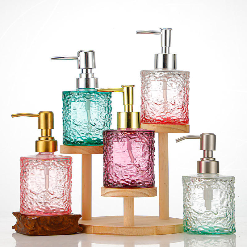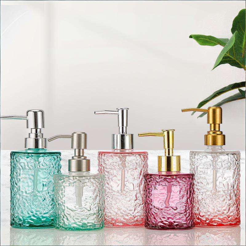 Distributeur de savon liquide en verre à motif vague d'eau avec bouchon à vis, pour voyage, gel douche, shampoing, portable, créatif, petit flacon vide, grande bouteille