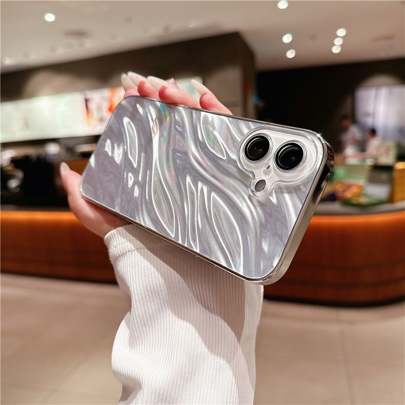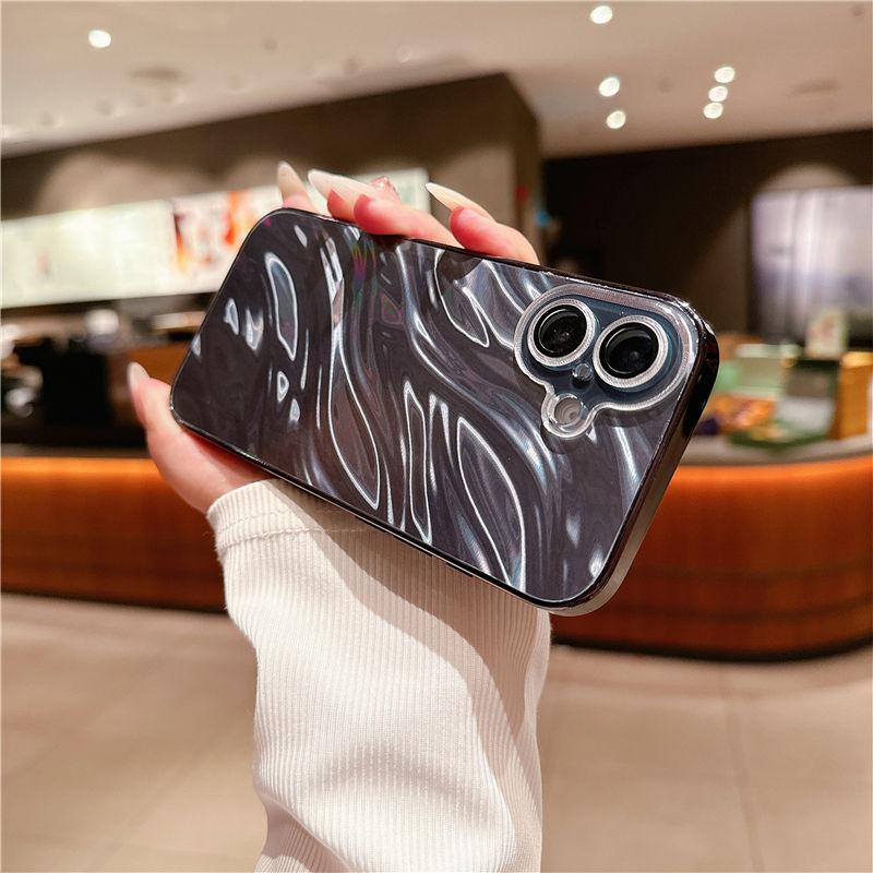 Coque de téléphone portable motif vague d'eau pour iPhone 15 16 Pro Max coque de téléphone à paillettes avec Film d'objectif pour iPhone 11 12 13 14 Pro Max