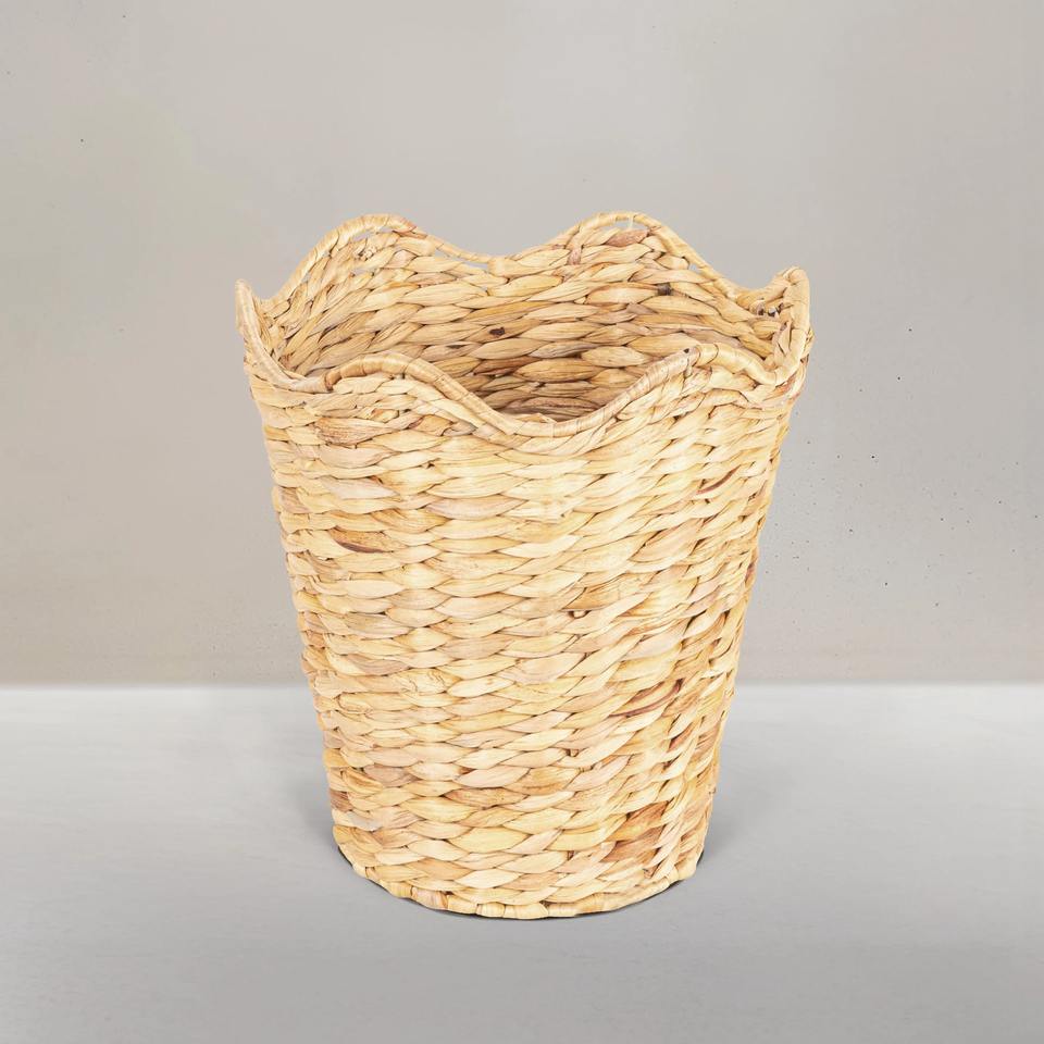 Taille: D11 x H11,8 pouces:Panier en jacinthe d'eau avec bordure tressée en coquillages