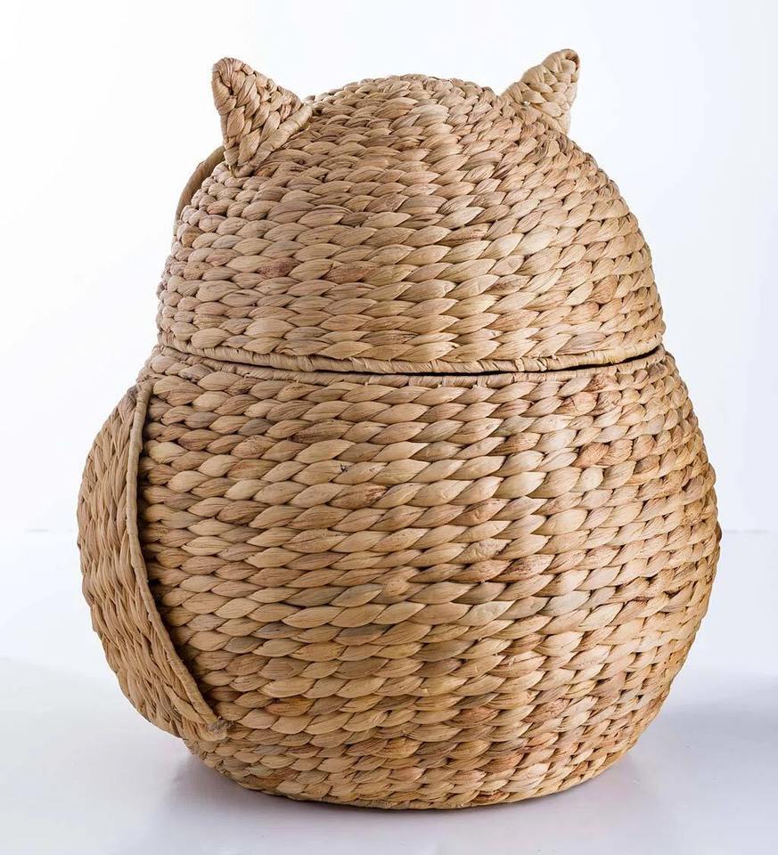 Size: W14 x H16 inch:Water hyacinth basket woven in the shape of an owl